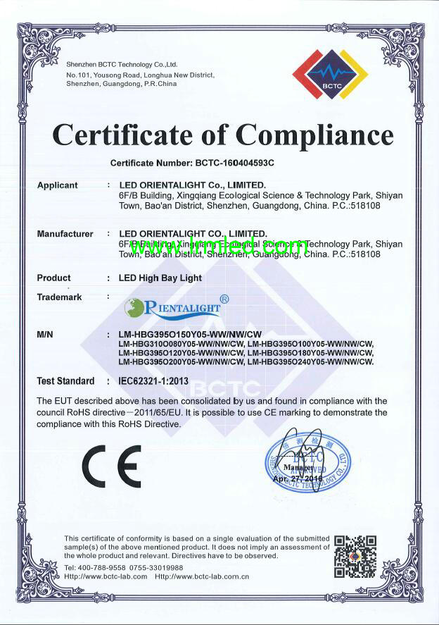 Our led Corn light, led high bay, led flood light and led fish gathering light got CE, RoHS, SAA, C-Tick certificate etc.